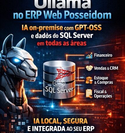 A maioria dos ERPs “tradicionais” ainda trabalha num ritmo diferente do mundo real: o dado existe, mas está espalhado; o usuário sabe o que quer, mas não sabe exatamente onde procurar; e o tempo gasto para transformar informação em decisão continua alto. É aqui que entra uma arquitetura que faz sentido para quem já tem processos, dados e regras consolidadas: IA rodando localmente (on-premise), perto do banco, com governança e auditoria. No Posseidom ERP Web, o papel do Ollama é ser o “motor” de execução dos modelos de linguagem dentro da sua infraestrutura — com baixa latência, controle total e sem expor dados sensíveis para fora. Em vez de “mandar tudo para a nuvem e torcer”, você cria uma camada de inteligência que conversa com o SQL Server de forma segura, respeitando perfil de acesso, regras de negócio e trilha de auditoria. 1) O que o Ollama faz, na prática, dentro do Posseidom Ollama é, essencialmente, o runtime que permite servir modelos localmente com um fluxo simples de inferência: você envia um prompt, recebe uma resposta — com suporte a streaming, controle de contexto e gerenciamento de modelos. Dentro do ERP, o Ollama vira um serviço interno (no seu datacenter) que o Posseidom chama do mesmo jeito que chamaria uma API interna. A diferença não é “ter IA”. A diferença é onde ela roda e como ela se conecta ao seu domínio: Isso tira o ERP do modo “tela e relatório” e coloca no modo “pergunta e ação”. 2) GPT-OSS como cérebro: modelo privado, respostas consistentes O modelo GPT-OSS (ou qualquer LLM “open/ownable” que você hospede) vira o núcleo cognitivo. Mas um LLM sozinho é apenas linguagem: ele escreve bem, porém não “sabe” seus números, seus clientes, suas notas fiscais, seu estoque, suas regras de preço, seus centros de custo. Por isso, a arquitetura correta no Posseidom não é “prompt solto”. É modelo + contexto + política de acesso + fontes confiáveis. O GPT-OSS é chamado para tarefas como: A credibilidade da resposta depende de um ponto: o contexto precisa vir do SQL Server de forma controlada. 3) O SQL Server como fonte de verdade: como a IA usa dados de todas as áreas Aqui está a virada de chave: o Posseidom não “entrega o banco” para a IA. Ele entrega recortes do banco, com regras claras. Isso normalmente é feito com três pilares: (a) Camada de Dados Curada (Views / Stored Procedures / APIs internas)Em vez de permitir SQL livre, você define fontes oficiais por área, por exemplo: Isso é governança. E é isso que impede a IA de “inventar consulta” ou puxar dado sensível além do necessário. (b) Orquestração do Contexto (RAG/Context Builder)Quando o usuário pergunta algo, o Posseidom constrói um “pacote de contexto” com: Esse pacote é o que o modelo recebe antes de responder. (c) Segurança e Compliance (RBAC, mascaramento, auditoria)A IA só “enxerga” o que o usuário já poderia ver no ERP. E cada resposta gera log: Isso transforma a IA em algo auditável — e não numa “caixa preta”. 4) Como o fluxo funciona do clique ao resultado Um fluxo típico dentro do Posseidom, com Ollama + GPT-OSS + SQL Server, fica assim: Resultado: o usuário não recebe “texto bonito”. Recebe análise com rastreabilidade. 5) Casos de uso por área: o que muda na prática Financeiro Vendas CRM Estoque Compras Fiscal Operação/Industrial (se aplicável) O ponto comum: a IA deixa de ser “chat” e vira interface de decisão. 6) O risco real: “IA que inventa” — e como você evita isso Se você conectar um LLM diretamente ao banco sem controle, você cria dois problemas: segurança e alucinação. A solução madura é simples (e não negociável): Isso faz o usuário confiar. E confiança é o ativo central de um ERP. 7) Por que on-premise é vantagem competitiva Rodar Ollama + GPT-OSS no seu datacenter dá três vantagens que viram argumento comercial forte: No fim, o Posseidom vira um ERP que não só registra a operação: ele interpreta, alerta e orienta.