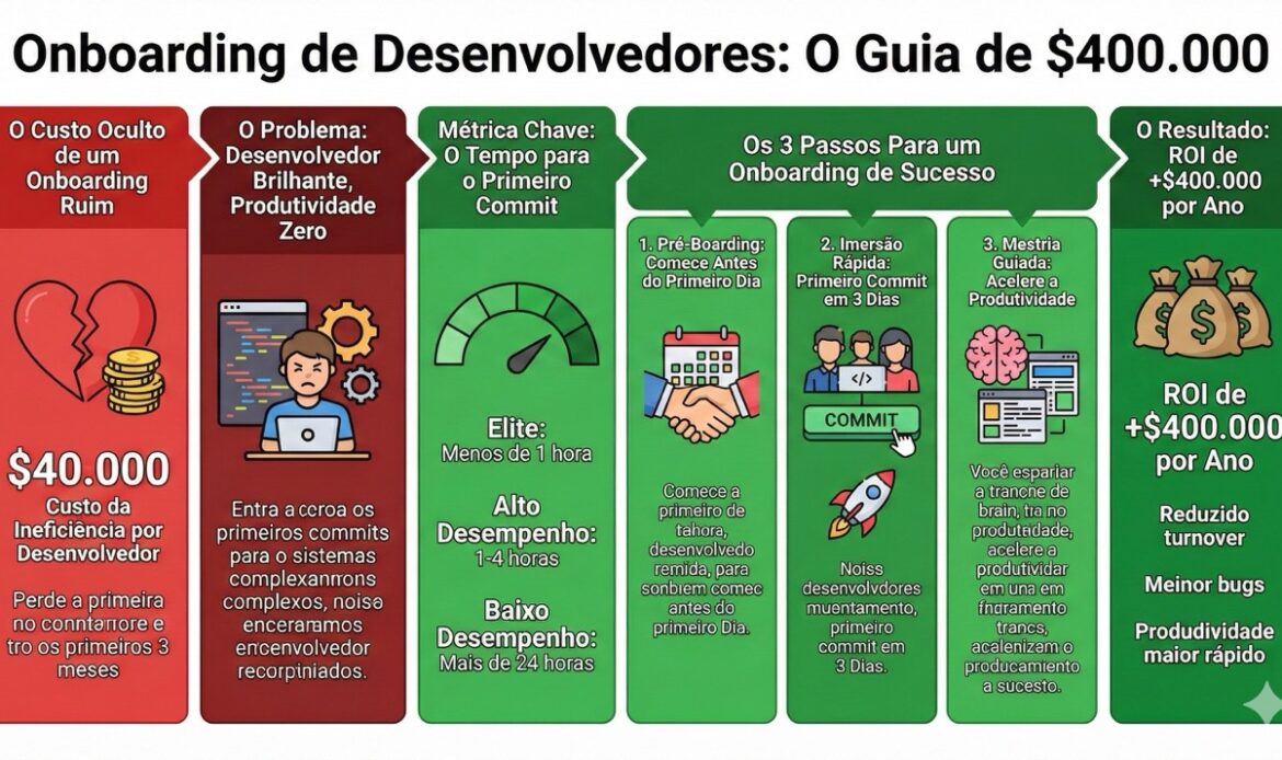 Um novo desenvolvedor deveria gastar máximo 2-4 horas na primeira semana configurando seu ambiente. Se ele está gastando mais de um dia nisso, sua estrutura de onboarding está quebrando.