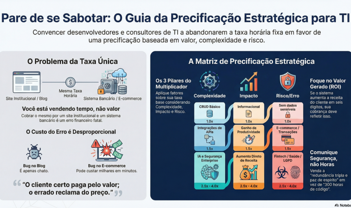 Deixa eu te fazer uma pergunta incômoda: você cobra o mesmo valor por hora para desenvolver um sistema de controle de estoque para uma pequena loja e para criar um módulo de pagamentos que vai processar milhões em transações diárias? Se a resposta for sim, continue lendo. Vamos resolver isso agora.