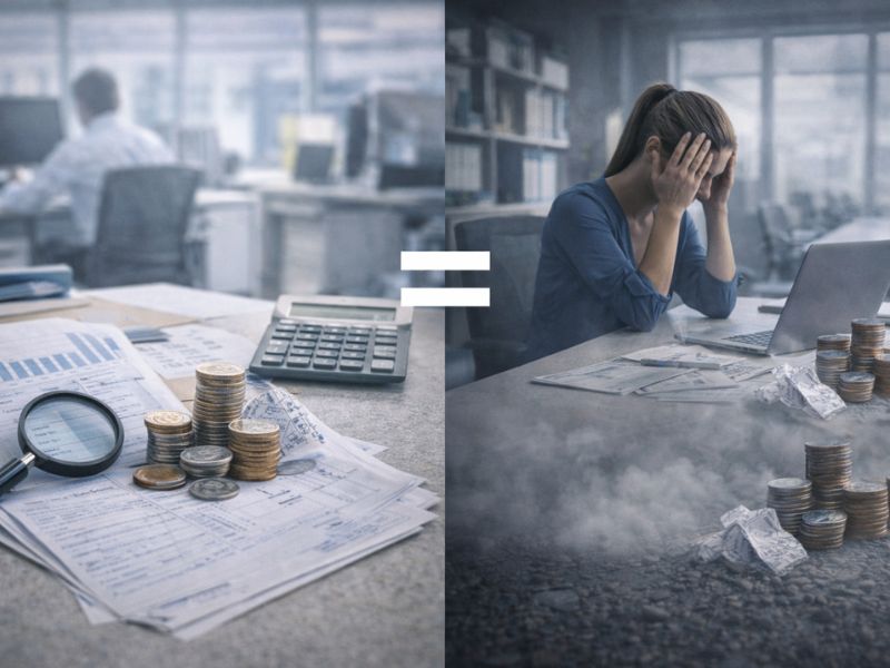 Ajustes manuais, correções de lançamento, conferências paralelas e processos que consomem horas improdutivas. - Decisão atrasada
