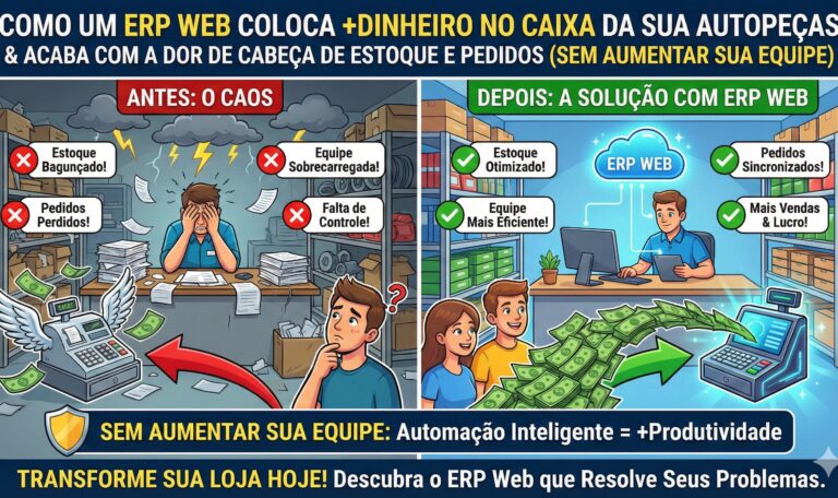 Todo dono de loja de autopeças conhece aquela sensação boa de “agora vai”: mais mecânicos fiéis, mais oficinas comprando, mais clientes finais chegando. O problema é que, quando a loja cresce, a rotina também cresce — e, se a gestão não acompanha, o que era para ser alegria vira ansiedade: planilhas de estoque que nunca batem, pedidos de peças específicas que demoram para sair, orçamentos que se perdem no WhatsApp, fornecedores que atrasam e você só descobre na hora da falta. A verdade é simples: crescimento saudável pede clareza. E clareza pede um sistema que organize o jogo para você ganhar com consistência. Um ERP é exatamente isso: um sistema de gestão que integra vendas, estoque, compras e financeiro em uma base única, automatizando processos para aumentar controle e eficiência. A partir daqui, a proposta é prática: mostrar benefícios imediatos (financeiros e operacionais), explicar a lógica do ERP Web de um jeito leve e motivador, e deixar você com um roteiro claro para transformar sua rotina em mais lucro e tranquilidade. Benefício real (ganhos financeiros e operacionais, do jeito que o dono de autopeças sente no dia a dia) Antes de falar de “módulos” e termos técnicos, vale olhar para o que realmente importa: como a sua vida melhora quando a loja passa a funcionar redonda. Benefícios (como o ERP automatiza e facilita, promovendo crescimento e tranquilidade na loja de autopeças) Abaixo estão benefícios diretos que um dono de autopeças sente rápido quando adota um sistema de gestão moderno e integrado. Integração que elimina buracos de informaçãoUm ERP integra as áreas da empresa em uma base única, reduzindo duplicidade e desencontro de dados. Na prática, isso significa que o que acontece na venda impacta o estoque, que conversa com o financeiro, que orienta compras — sem você virar “ponte humana” entre setores. Quando um mecânico compra 4 amortecedores, o estoque baixa automaticamente, o financeiro registra a venda e o sistema sugere reposição se o giro estiver alto. Automação do que te prende no operacionalAutomatizar não é “tirar o humano”: é tirar o humano do repetitivo para colocar no estratégico. Exemplos de automação que mudam o dia a dia da autopeças: Visibilidade em tempo real (o ganho de paz)Quando o dono consegue olhar a loja de autopeças de forma clara, a ansiedade diminui porque a dúvida diminui. Sistemas ERP são usados para simplificar funções e fluxos por automação e integração, criando uma visão consolidada do negócio. Você troca “torcer para estar tudo certo” por “saber o que está certo e o que precisa agir”, como saber exatamente quantas peças de cada código você tem e qual o prazo de reposição de cada fornecedor. Mobilidade para não ficar refém do balcãoUm ERP Web (em nuvem) permite acompanhar a operação com mais flexibilidade, inclusive fora da empresa, desde que haja internet, o que ajuda a manter continuidade e agilidade na gestão. Isso não é sobre trabalhar 24 horas; é sobre poder escolher: estar presente na filial nova, visitar fornecedores ou resolver uma urgência com o mecânico cliente sem perder controle do que acontece na loja. Solução (educação): ERP Web como ferramenta de liberdade, controle e crescimento para loja de autopeças Pense em um ERP Web como o “painel do carro” da sua loja de autopeças. Você não dirige olhando para o motor; você dirige olhando para o painel. O painel não faz o carro andar sozinho, mas te dá velocidade, direção, alerta, combustível e segurança para chegar mais longe. Três analogias simples para fixar: O ponto central: gestão integrada não é burocracia. É liberdade operacional. É você ter o controle sem carregar o peso de saber de cor qual peça serve para qual carro. Como criar urgência (sem pressão vazia) A urgência real não vem do medo; vem do custo invisível de adiar: A pergunta que coloca tudo em perspectiva: “Quanto custa, por mês, continuar gerindo a loja de autopeças com improviso?” Roteiro prático para adotar (e colher benefício rápido na loja de autopeças) Para colher benefícios imediatos, a implantação precisa ser objetiva. Um caminho simples: Como o Posseidom potencializa resultados na sua loja de autopeças Quer sentir o benefício já na primeira semana? Com um ERP Web como o Posseidom, o objetivo é simples: reduzir retrabalho e dar visão rápida da loja para você decidir com confiança. Exemplo prático: “Em 2 cliques, você confere o que vendeu para oficinas, o que tem para receber e quais peças estão no estoque crítico — e transforma tempo operacional em tempo de crescimento.” Próximo passo: Agende uma demonstração do Posseidom e veja como seria sua rotina com tudo integrado. Compartilhar: